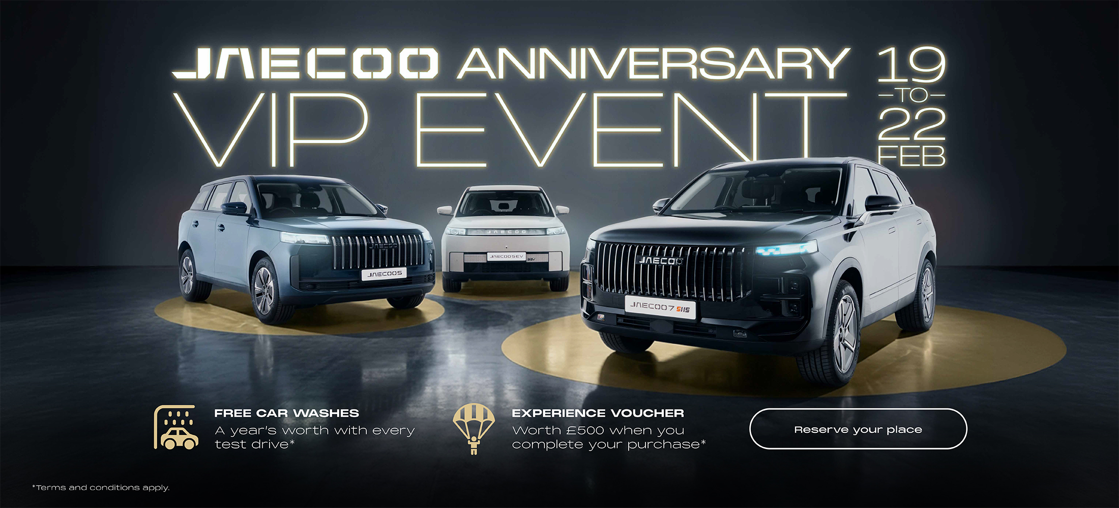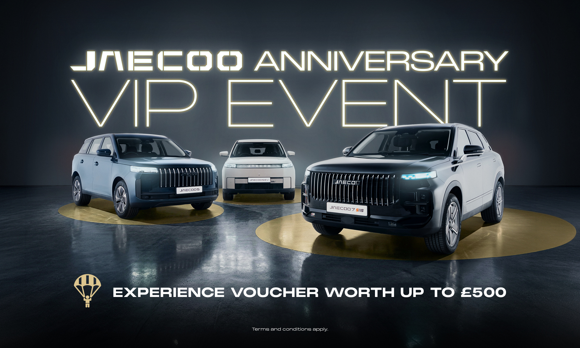 Thank you for purchasing a New JAECOO during our Anniversary VIP event. As you have now taken delivery of your New JAECOO, you are entitled to a Free Experience on us!